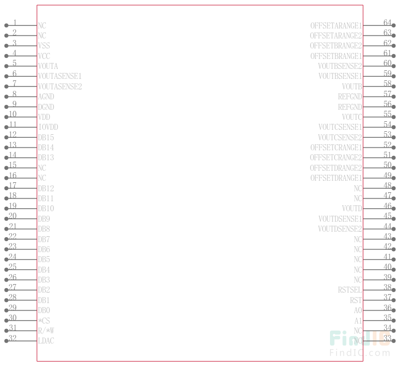 16Bit, Quad Voltage Output Digital to Analog Converter 64-LQFP -40℃ to 85℃